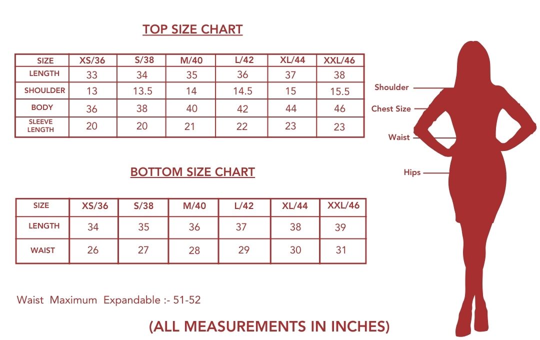 XXL (Double Extra Large) = Chest/Bust:46″, Length: 38″