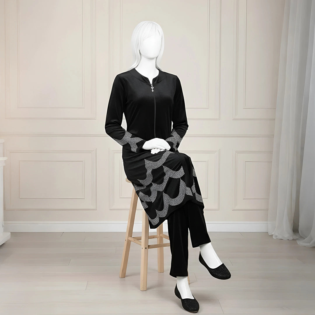 Elevate your winter wardrobe with this premium velvet co-ord suit, crafted to provide both warmth and refined elegance. The high-quality velvet fabric delivers a soft, luxurious feel while ensuring excellent protection during cold weather. đŗ Product details Fabric Type: Imported Velvet Care Instructions: Hand Wash Front Side: Zipper Neck Style: Round Stone: Original DMC Suitable for weddings, formal gatherings, and seasonal celebrations, this outfit offers a sophisticated appearance with timeless charm. A distinguished choice for those seeking a classic yet fashionable winter ensemble.
